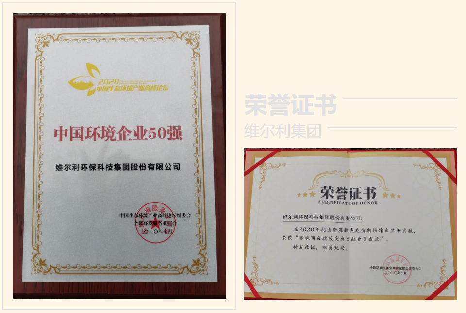 全联环境商会2018年开始发布中国环境企业50强榜单,主要根据各环境企业年度营业收入总额进行评判。此次入围的50强环境企业是推动国家绿色发展和生态文明建设的中坚力量。维尔利环保集团凭借出色表现再度登榜。