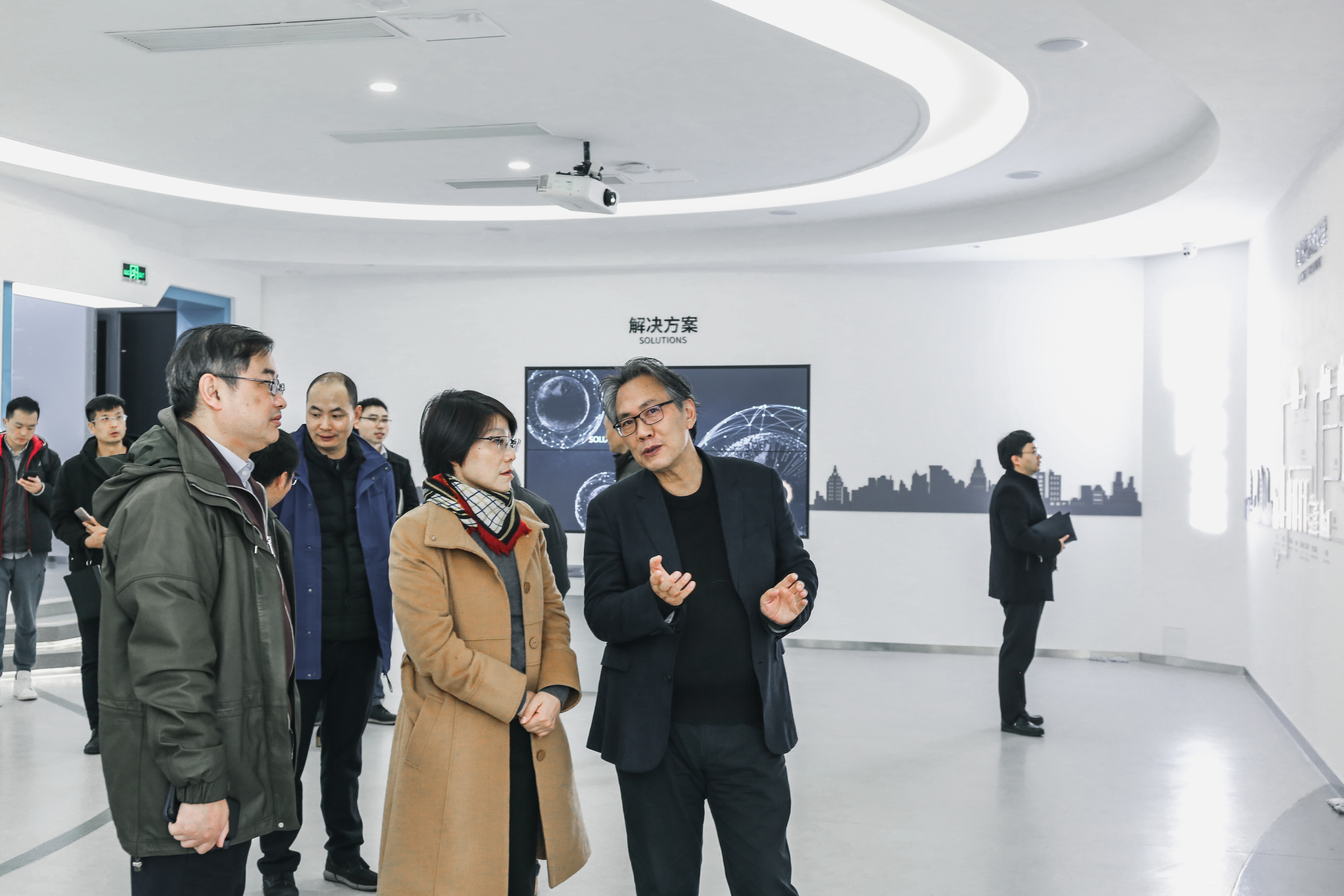 上海城投集团领导一行首先参观了维尔利集团环保科技展厅、大数据云平台中心及研发中心,了解了维尔利集团的发展沿革、主营业务及项目案例等内容。集团董事长李月中博士向来宾重点介绍了集团有机废弃物资源化处理工艺及关键核心技术,强调了创新在环保领域的重要作用。